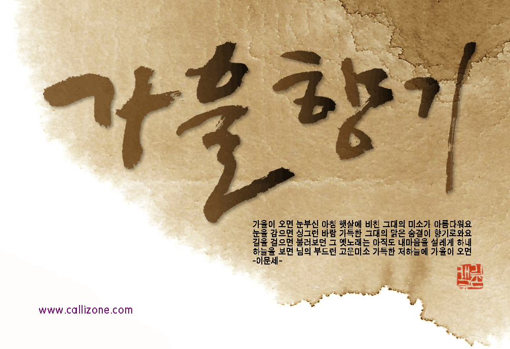 [직접쓴 캘리} 가을향기 callizone 일반 1 9093 2007.10.02 14:07 http://www.callizone.com/home/index.php + 549 가을이 익어가고 있습니다. 가을을 음미하면서 한번 만들어 보았습니다. 회원님들 감기조심 하세요^^